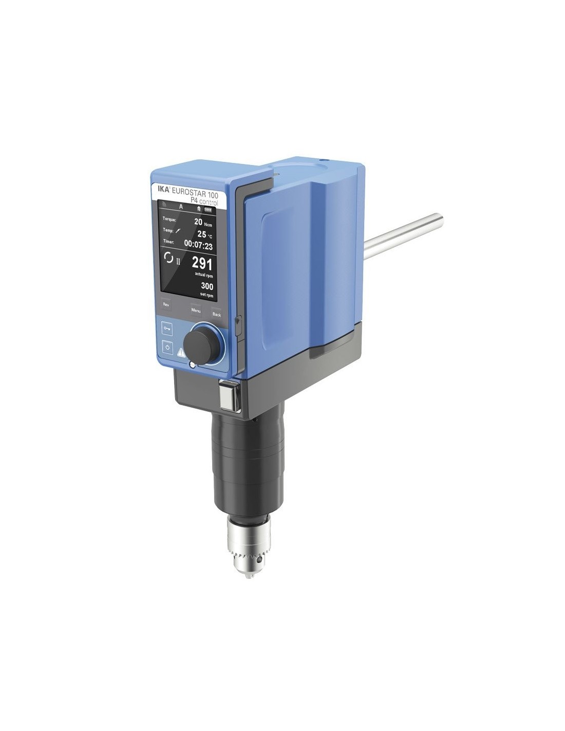 Mimoriadne výkonné laboratórne miešadlo EUROSTAR 100 control P4 s odnímateľným bezdrôtovým ovládačom a digitálnym TFT displejom je zvlášť vhodné pre vysoko viskózne aplikácie a poskytuje krútiaci moment až 320 Ncm. Automaticky upravuje rýchlosť pomocou mikroprocesorom riadenej technológie v rozsahu otáčok 0/10 - 300 ot / min. Miešadlo je vybavené rozhraním RS 232 a rozhraním USB na ovládanie a dokumentáciu všetkých parametrov. Ďalej je k dispozícii integrovaný indikátor smeru krútiaceho momentu na meranie zmien viskozity a jeho elektronický bezpečnostný obvod zaisťuje automatické prerušenie v podmienkach zabránenia zastaveniu alebo preťaženiu. Zachováva sa nepretržité porovnávanie otáčok hriadeľa s požadovanou rýchlosťou a variácie sa upravujú automaticky. To zaručuje konštantnú rýchlosť aj pri zmenách viskozity vzorky.