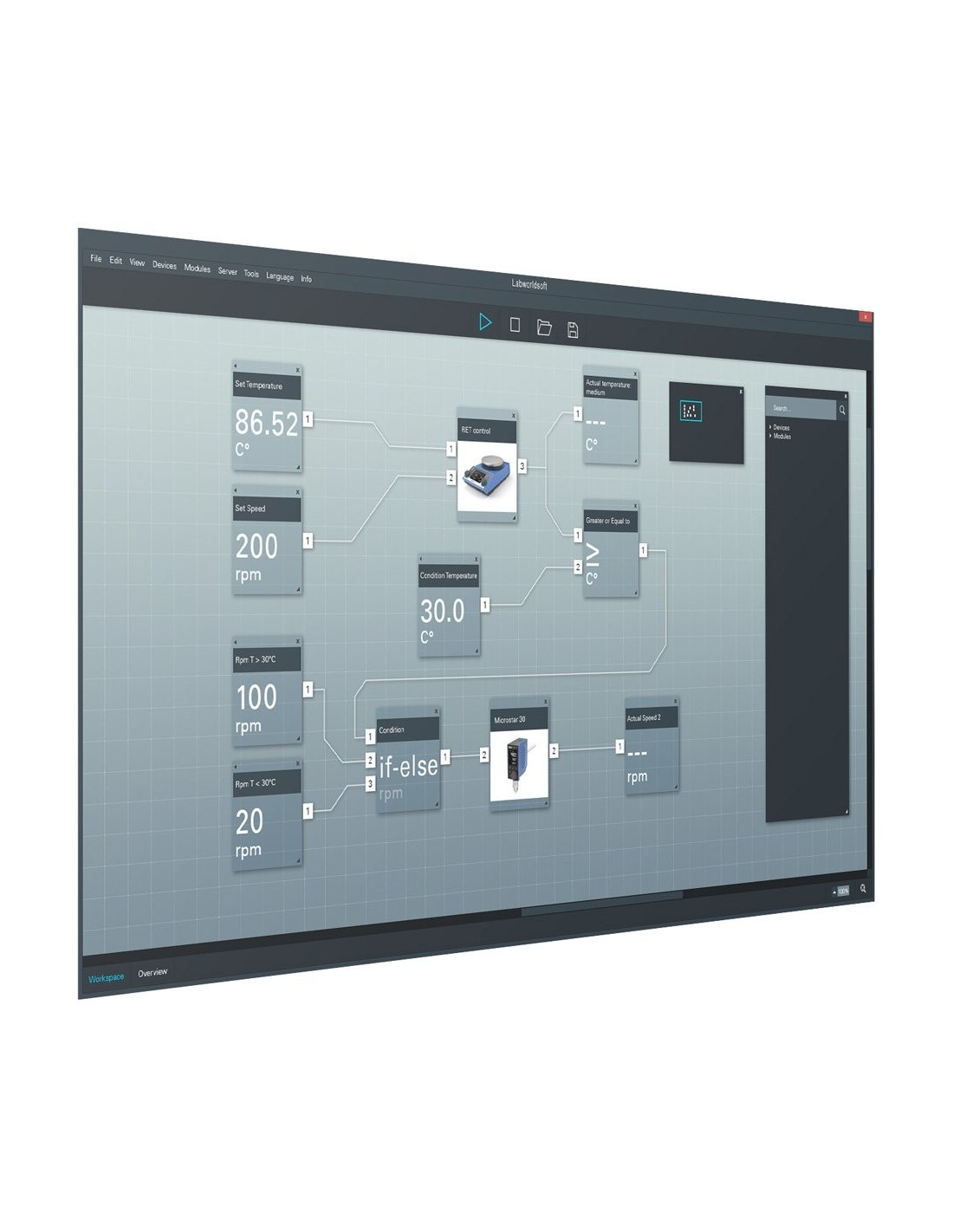 labworldsoft je laboratórny softvér na riadenie laboratórnych zariadení, automatizáciu procesov a dokumentáciu meraní a výsledkov. Tento softvér poskytuje prístup k obrovskej knižnici rôznych laboratórnych prístrojov. labworldsoft neintegruje iba laboratórne zariadenia IKA, ale podporuje aj niekoľko ďalších zariadení od rôznych výrobcov. Pri výbere svojich laboratórnych prístrojov, ktoré chcete používať, si zachovávate flexibilitu a profitujte z celého radu laboratórnych prístrojov.